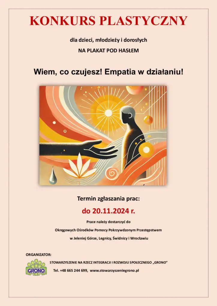 Kolejny konkurs w naszym „Gronie” nie jest przypadkiem. 2 października przypada Międzynarodowy Dzień Empatii i w ten właśnie sposób chcemy się do niego przyłączyć. Jesteśmy pewni, że zajęciom artystycznym, związanym z wykonaniem konkursowej pracy, będą towarzyszyć rozmyślania i rozmowy na temat empatii.