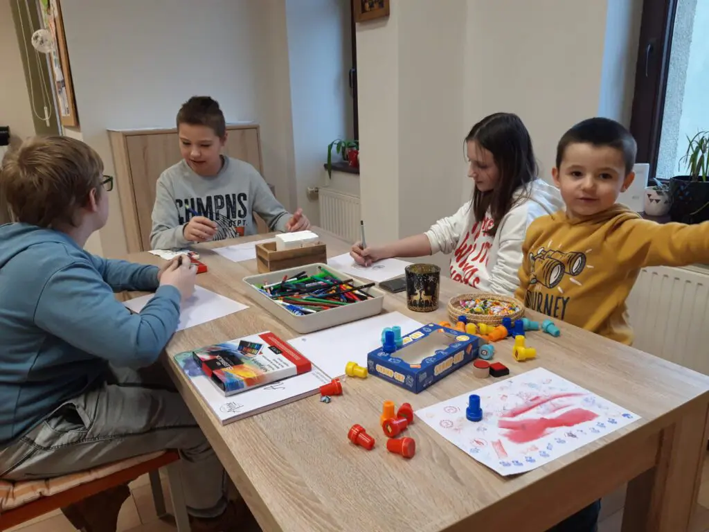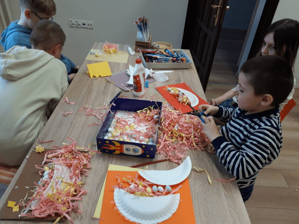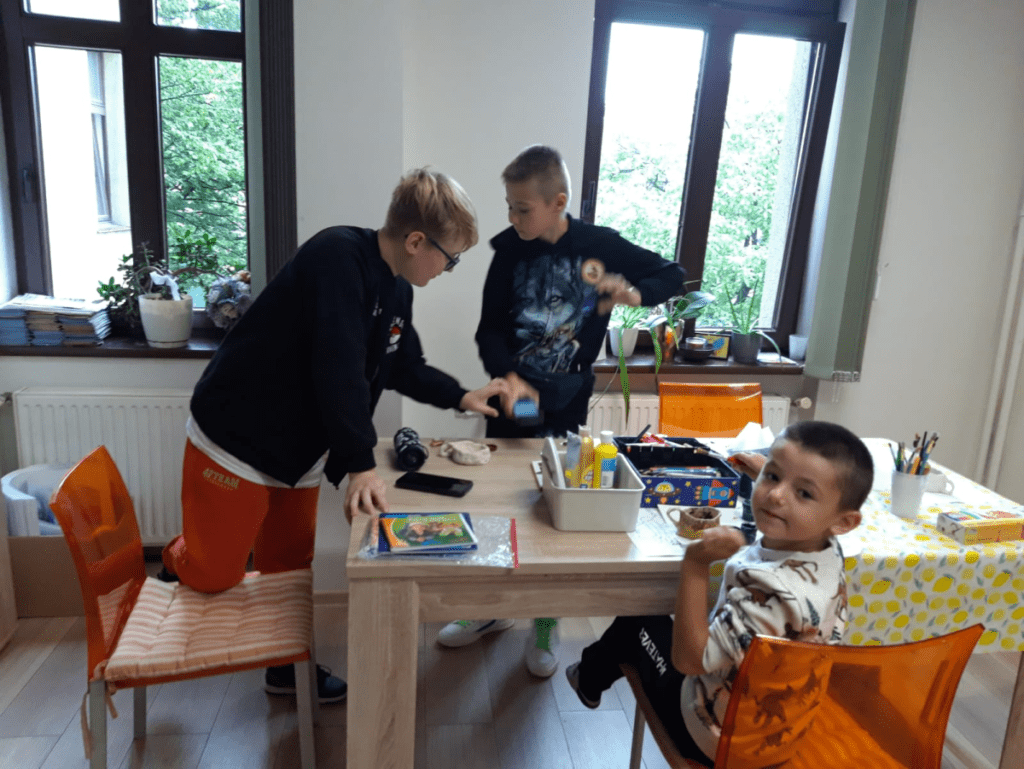 I ten proces ma miejsce również w naszych świetlicach terapeutycznych. Warsztaty artystyczne – zwłaszcza przy pracy, która ma przedstawić emocje – to nie tylko rysowanie, malowanie, wycinanie i klejenie. To poznawanie nowych technik, nowych materiałów, kreowanie pomysłów. To rozmowy.