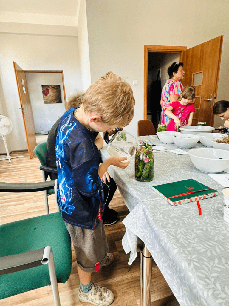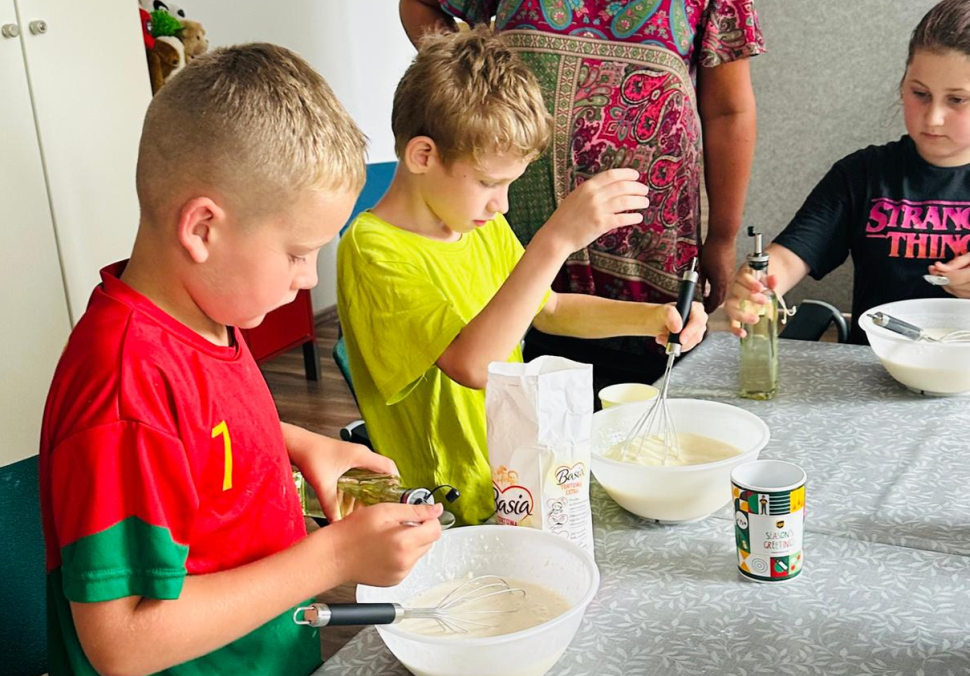 Nie inaczej jest podczas warsztatów kuchennych: przynosimy przepisy, przygotowujemy potrawy, gotujemy, pieczemy, a na koniec smakujemy to, co wykonaliśmy własnymi rękoma. Czasem świętujemy czyjeś urodziny. I rozmawiamy. O zwyczajach w domu, o historii, o porach roku, o zwierzętach, roślinach, o bezpieczeństwie na drodze…