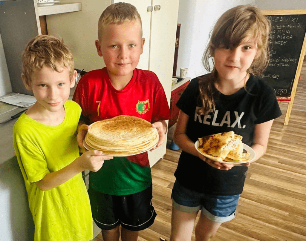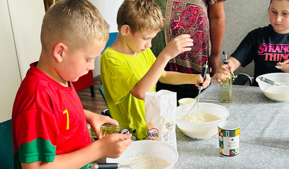 Można powiedzieć, że było to smakowite spotkanie naszych podopiecznych, którzy akurat nie wyjechali na wakacje z miasta. Smakowite i edukacyjne, ponieważ nie każdy z uczestników (zwłaszcza tych kilkuletnich) miał okazję robić naleśniki w domu.