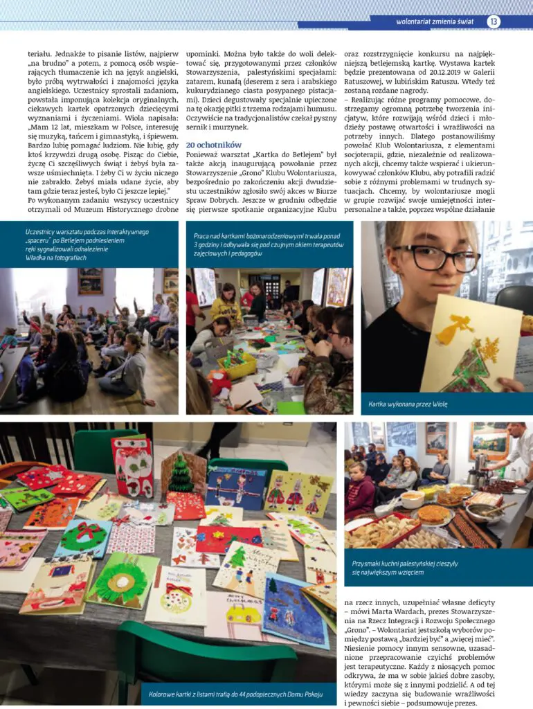 Naszą ideą jest angażowanie wszystkich chętnych, dzieci i młodzieży do zwracania uwagi na trudne tematy wokół nas oraz uczenie ich wrażliwości i właściwej empatii. Do Biura przyjmiemy wszystkich, którzy chcą zrobić choćby najmniejszy dobry uczynek, mają pomysł, który przysłuży się lokalnej społeczności, chcą działać na rzecz kultury. Będą mogli się tu odnaleźć także ci, którzy potrzebują wsparcia i pomocy. Czas, w którym przeprowadzimy warsztaty nie jest przypadkowy, zbliżające się Święta Bożego Narodzenia są okazją do refleksji na temat ich istoty czyli obdarowywania się dobrem i życzliwością. Dlaczego Kartka do Betlejem? Wszystkich chętnych, chcących poznać tajemnicę zapraszamy do wypełniania formularza i zgłaszania się na warsztaty do 20 listopada 2019.